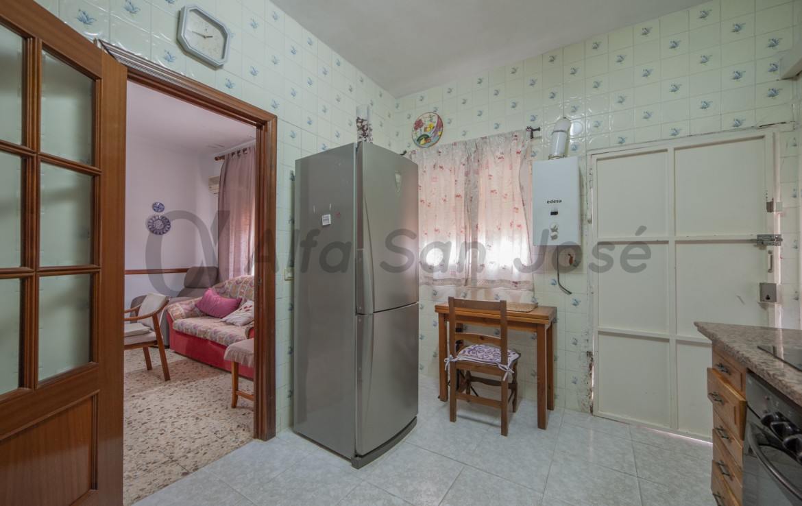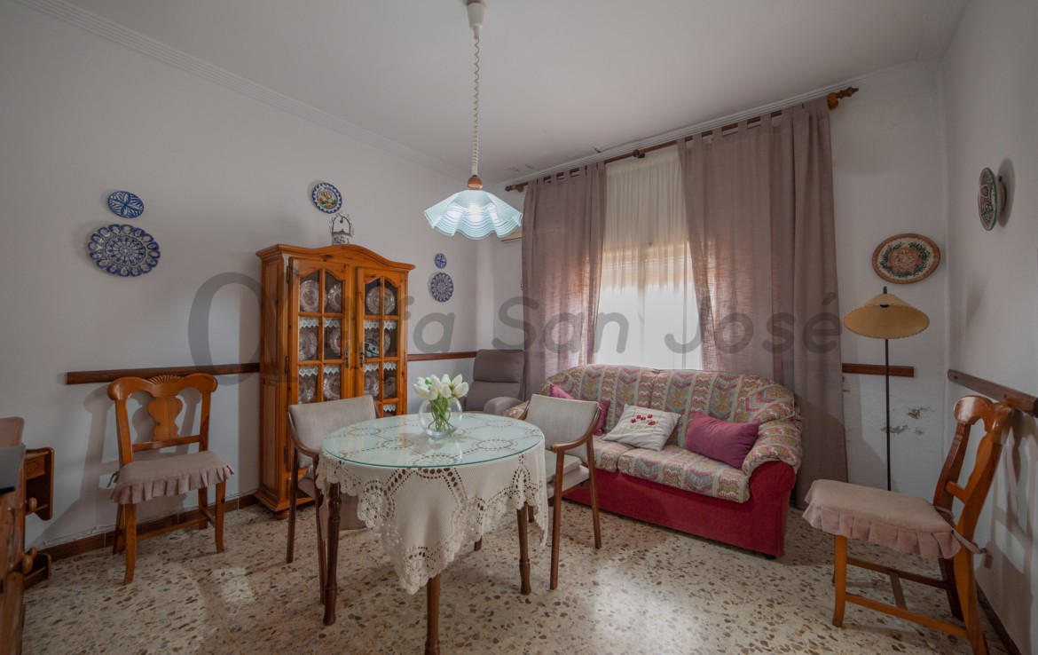 La vivienda ofrece una distribución cómoda y funcional en una sola planta. Al entrar, nos recibe una amplia entrada, perfecta también como salón principal, ideal para recibir a tus invitados o disfrutar del día a día en un ambiente espacioso. Dispone de tres dormitorios grandes y muy luminosos, un baño con plato de ducha y una salita pensada para los meses de invierno, donde la calidez del hogar se siente en cada rincón. La cocina, amplia y luminosa, nos conduce al enorme patio, un espacio exterior lleno de oportunidades: construir una piscina, instalar una zona de barbacoa, crear un jardín y zona de aparcamiento o incluso ampliar la vivienda.