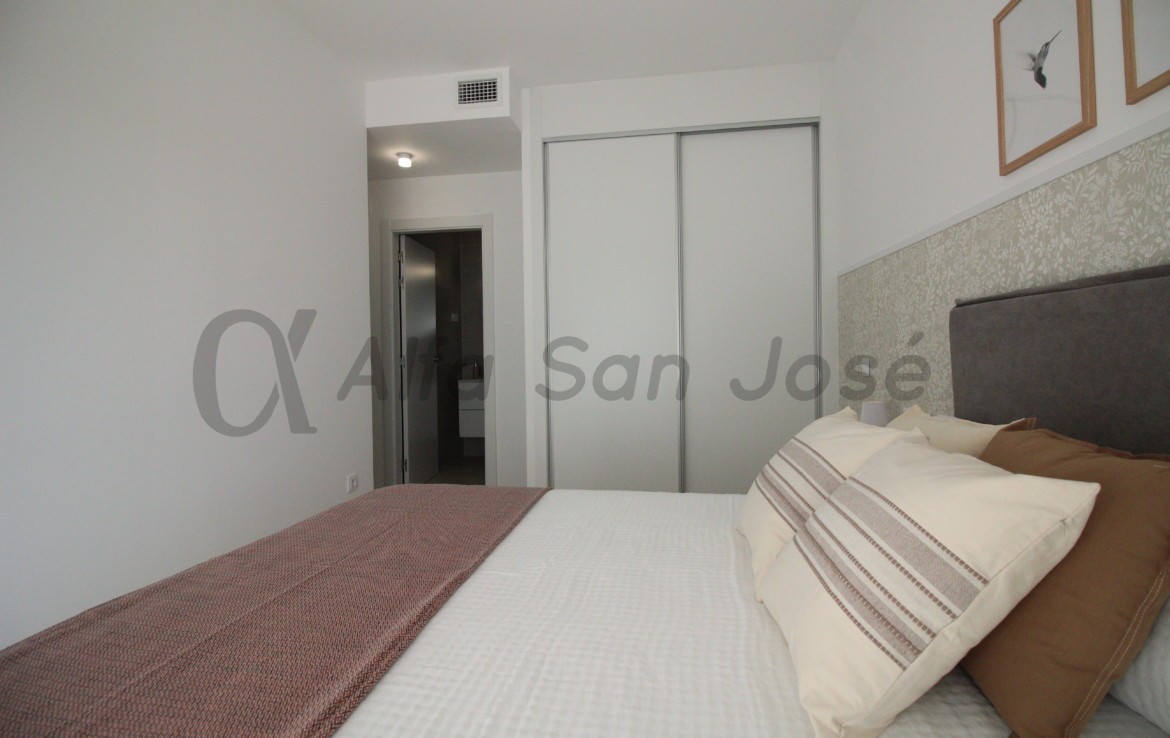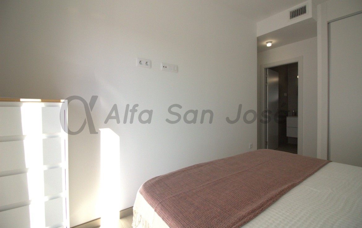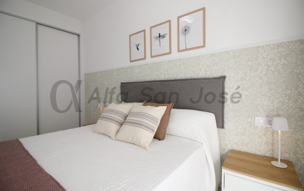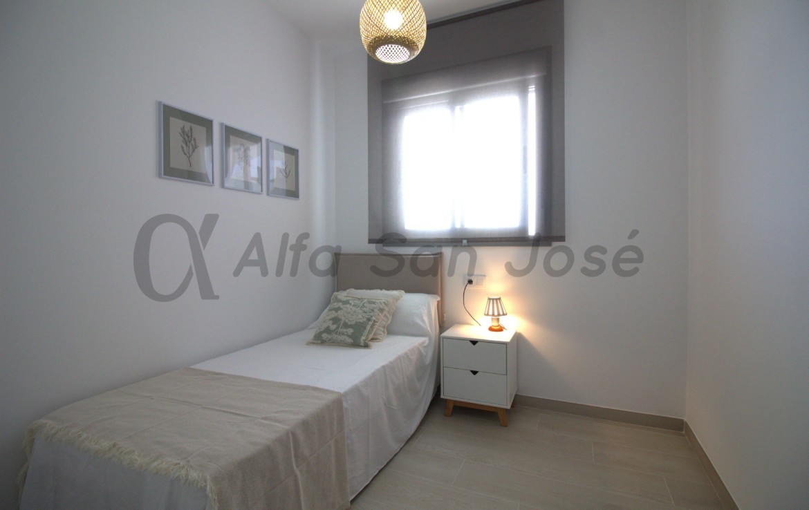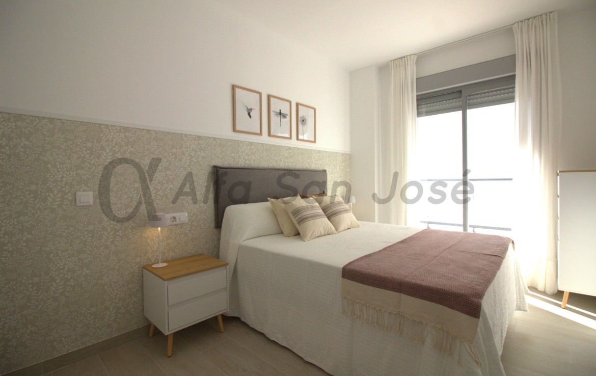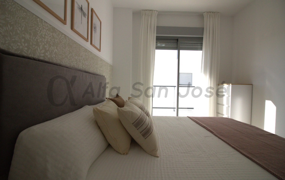 La vivienda se encuentra completamente amueblada en un edificio con ascensor de 6 plazas y con vistas a las zonas comunes de la urbanización. Consta de dos dormitorios (un dormitorio individual con armario empotrado y un dormitorio principal amplio con baño interior y armario empotrado y, además, con acceso directo a la terraza). Ambos espacios están diseñados para ofrecer bienestar y funcionalidad.